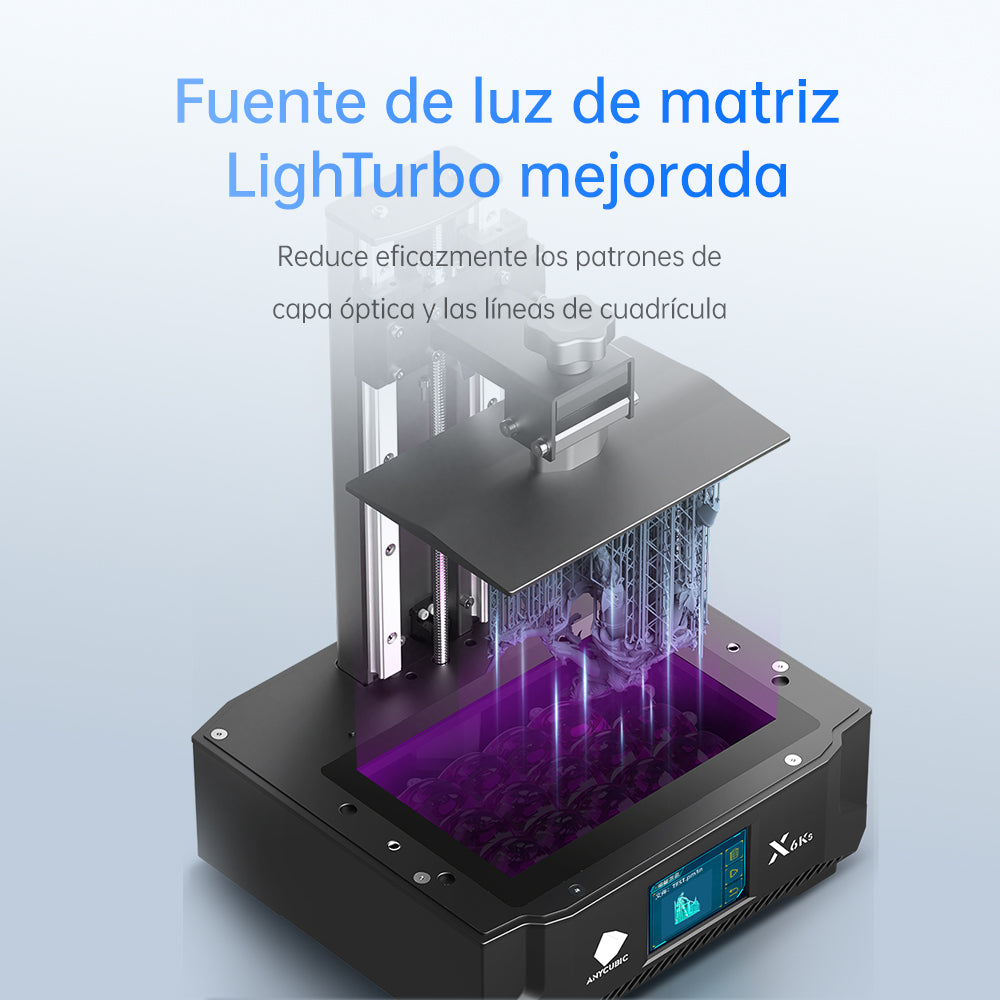 La fuente de luz matricial Anycubic LightTurbo mejorada y la lente óptica texturizada de alta precisión proporcionan una fuente de luz estable y paralela, eliminando efectivamente las capas ópticas y las líneas de cuadrícula y creando una superficie de modelo suave y delicada. La velocidad de impresión alcanza los 15-60 mm/h, recoge todos tus modelos incluso antes.