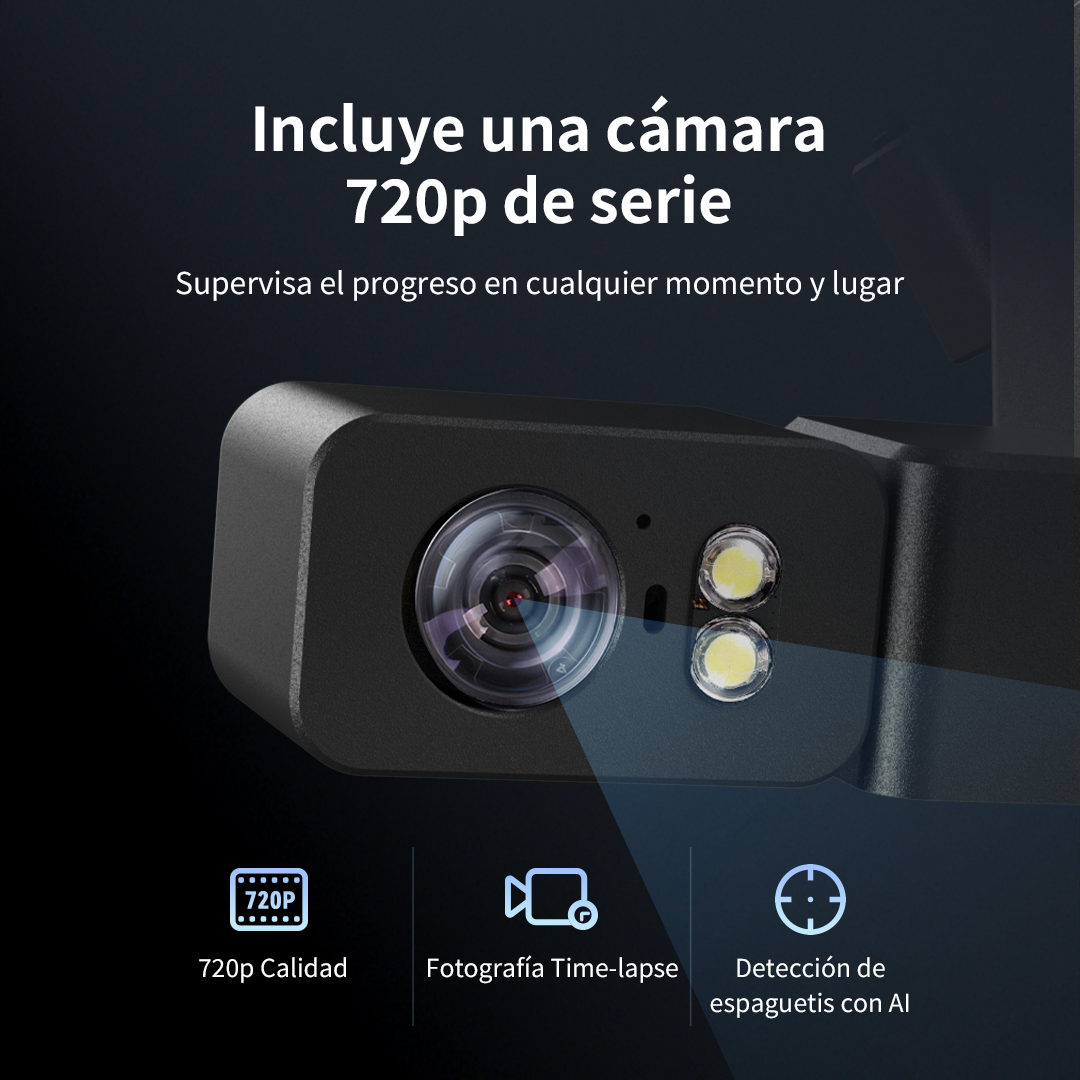 3. Viene de serie con una cámara de 720p para monitoreo instantáneo. (El modelo de las piezas de montaje de la cámara ya está incorporado en el archivo de memoria de la impresora y debe ser impreso e instalado por los usuarios.)