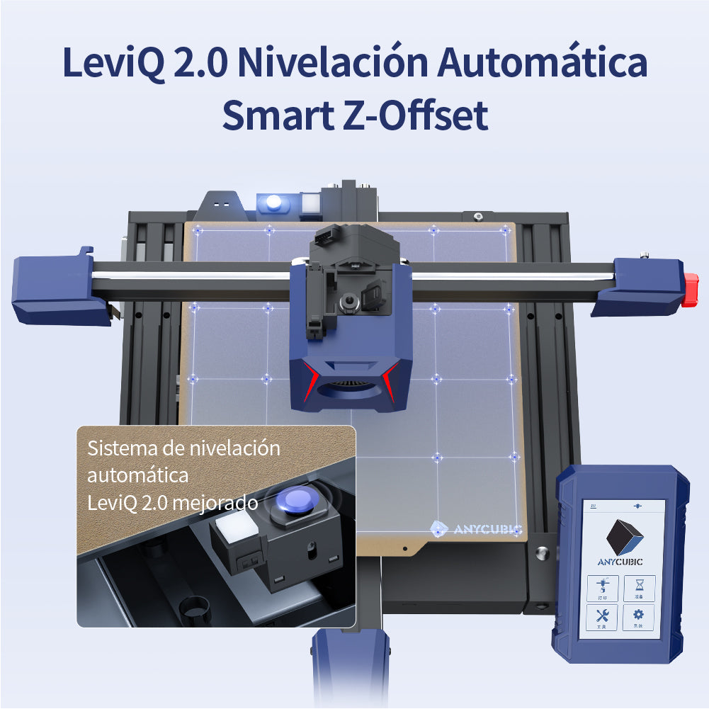 El nuevo y mejorado Sistema de Nivelación Automática LeviQ 2.0 en combinación con un módulo modular personalizado permite ajustar inteligentemente el desfase en el eje Z sin necesidad de ajuste manual. El Z-Offset puede personalizarse para satisfacer diversas necesidades de impresión.