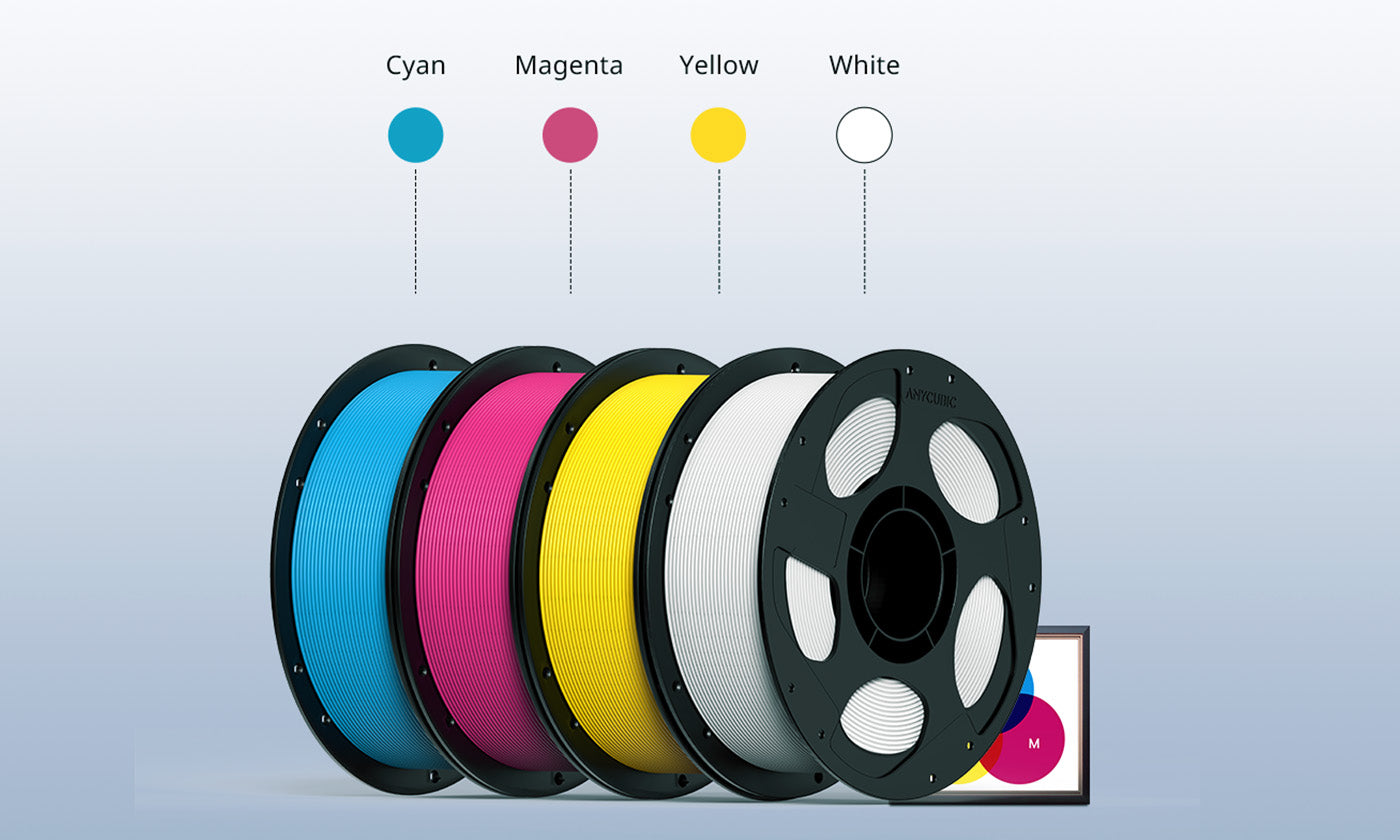 El filamento CMYK utiliza cian, magenta, amarillo y blanco para producir impresionantes impresiones multicolor con la ACE Pro. Al aprovechar el principio de mezcla de colores translúcidos, las capas superpuestas del filamento se fusionan para crear nuevos colores. Ajustar las proporciones de los cuatro colores permite generar más de un millón de combinaciones de colores únicas bajo la luz.