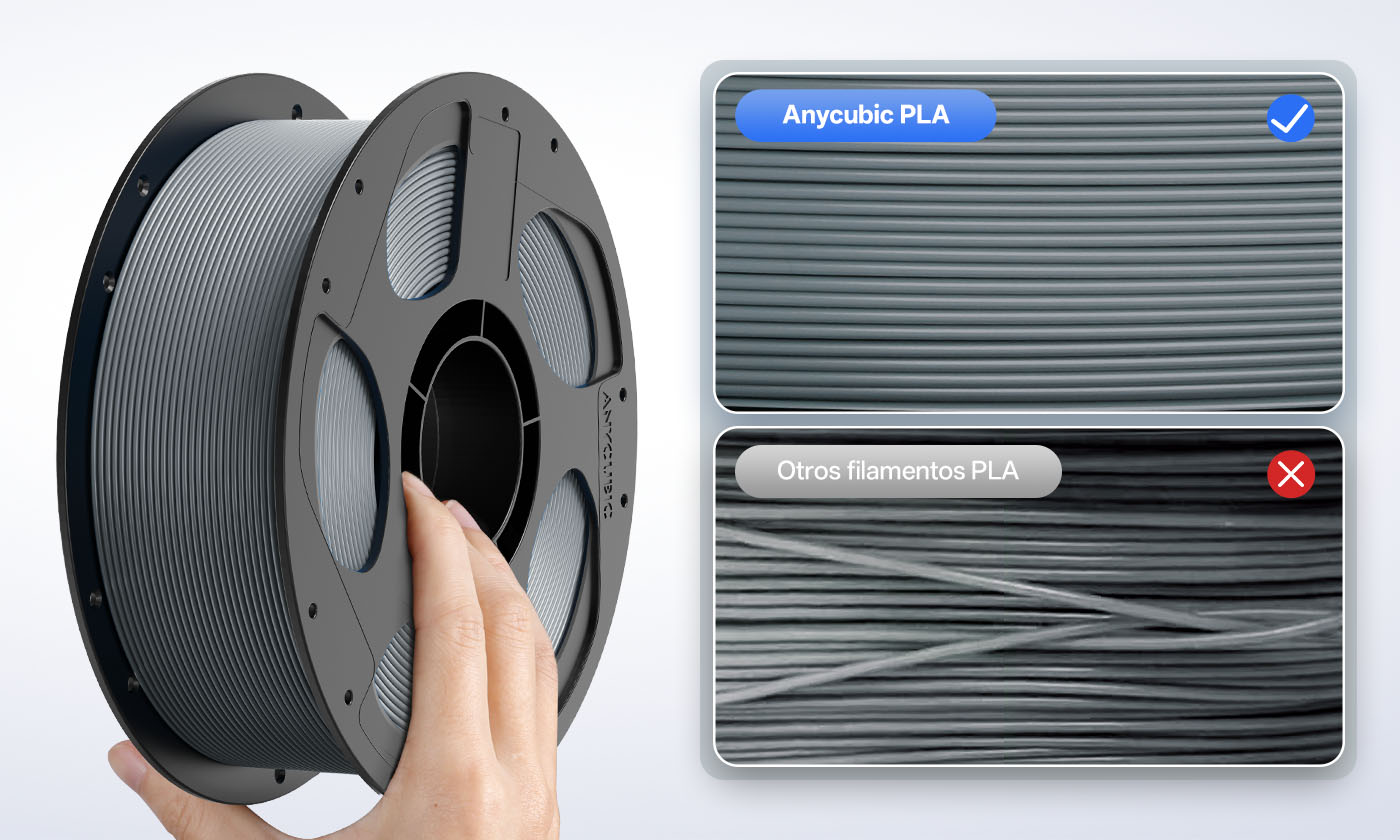 Anycubic PLA Básico está diseñado por expertos para una impresión impecable. Cada bobina está enrollada uniformemente y empaquetada con cuidado para evitar enredos y garantizar una alimentación uniforme y fluida. Esto elimina los atascos y ofrece tasas de impresión excepcionales en todo momento.