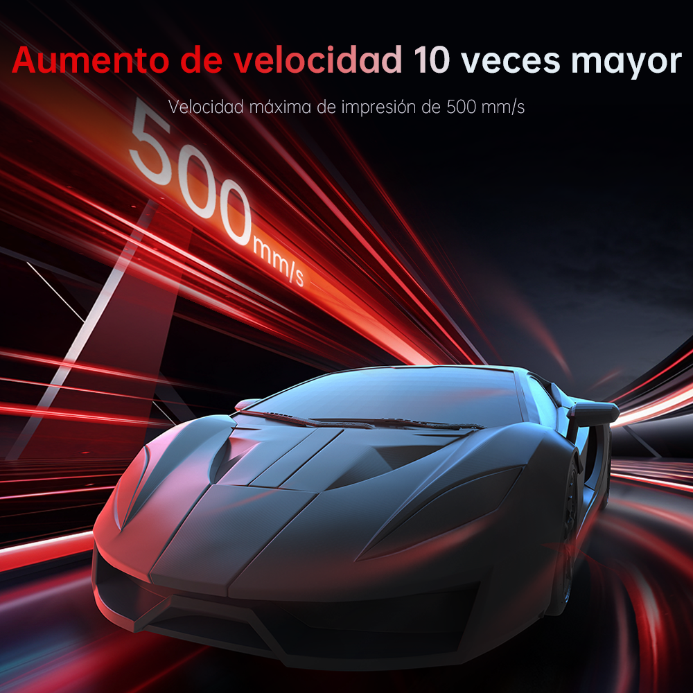 Comparado con las impresoras 3D FDM convencionales, la velocidad de impresión se incrementa en 10 veces. La velocidad máxima de impresión es de hasta 500 mm/s.