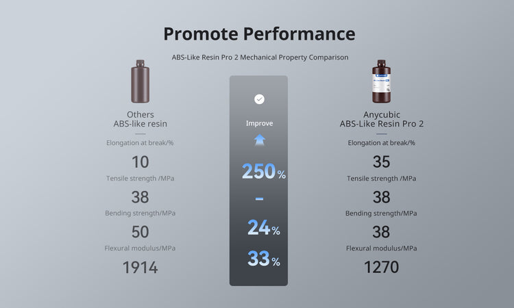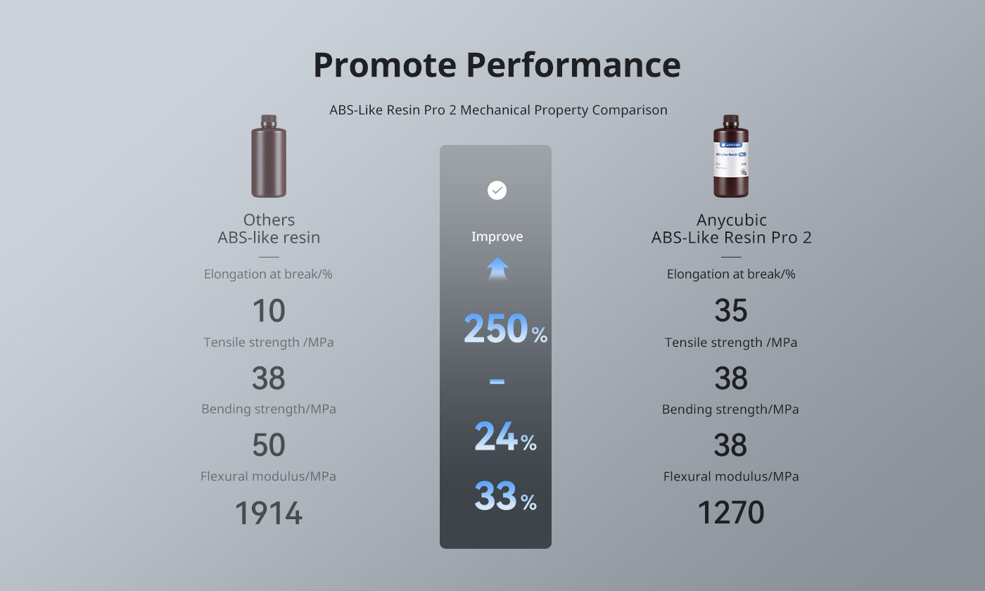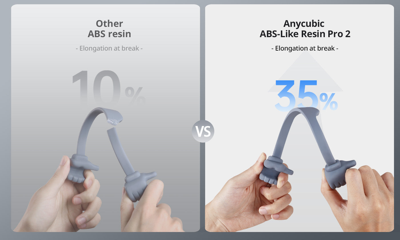 Basado en la excelente resistencia a la tracción y a la flexión de la versión anterior de resina similar a ABS +, la resina similar a ABS Pro 2 fortalece el rendimiento de tenacidad, aumenta el alargamiento de rotura al 35% en más del 100% y el modelo terminado es más fuerte y más duradero, lo que se puede utilizar para imprimir modelos de alta resistencia y alta tenacidad, como piezas estructurales, piezas de prototipos industriales y accesorios.