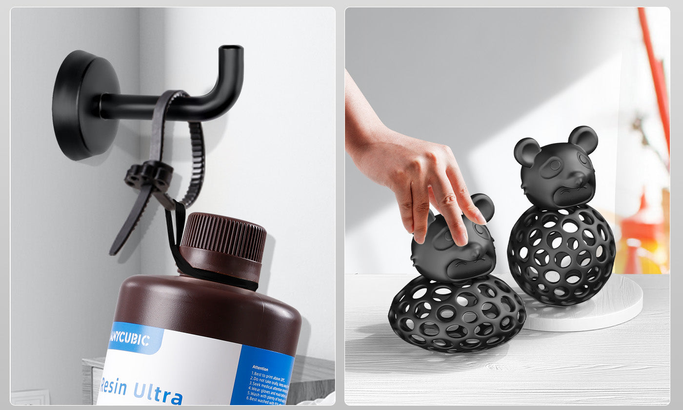 B. Sumerja el modelo en la solución de limpieza, enjuáguelo o lávelo con ultrasonidos, y luego sáquelo y escúrralo. Se recomienda el uso de máquinas de lavado y curado ANYCUBIC para garantizar un mejor resultado.