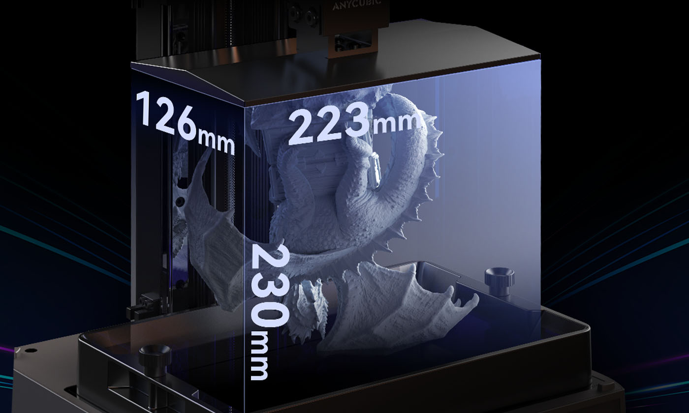 Photon Mono M7 tiene un volumen de construcción de 223*126*230 mm, lo que proporciona un amplio espacio para su creatividad.