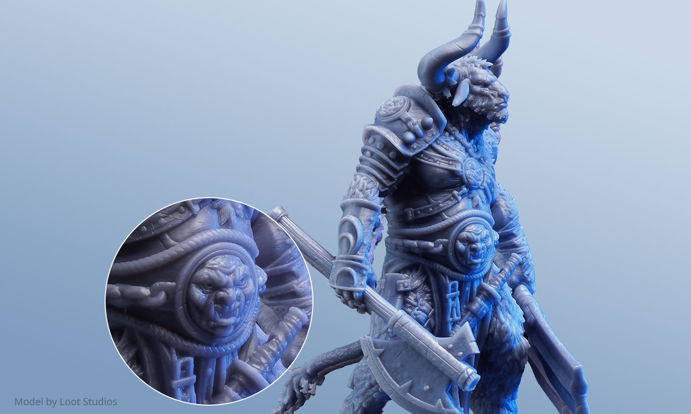 Una baja tasa de contracción reduce la deformación de los modelos durante la construcción. Los detalles suaves y finos de las miniaturas terminadas realzan su alta calidad.