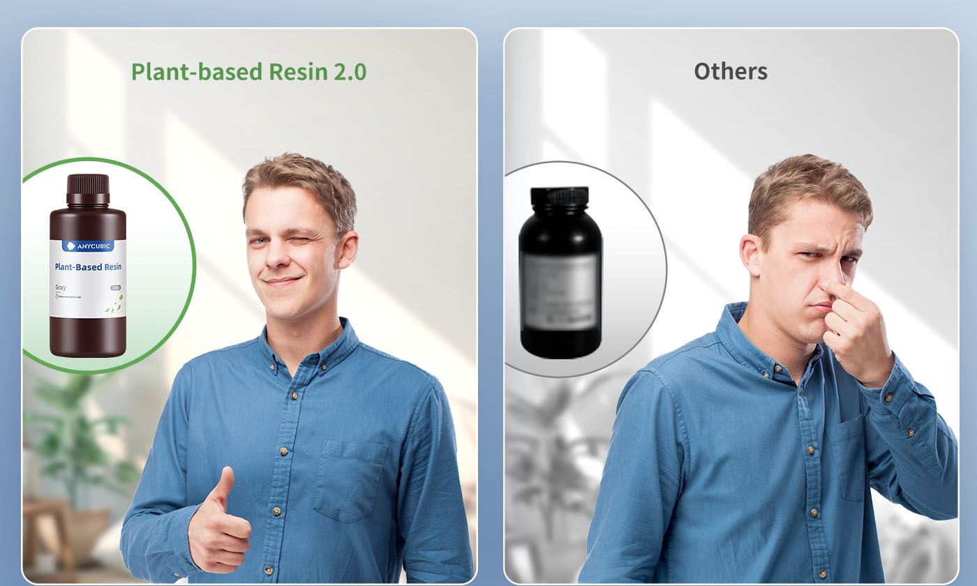 La resina vegetal Anycubic Plant-based Resin 2.0 es compatible con la mayoría de las impresoras 3D LCD/DLP y sensible a la luz ultravioleta de 355-410 nm, funciona perfectamente con las impresoras 3D de resina ANYCUBIC.