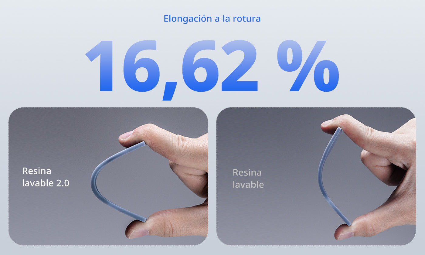 Una elongación a la rotura del 16,62 % garantiza la tenacidad tras el curado, lo que da como resultado modelos duraderos resistentes a fracturas y grietas.